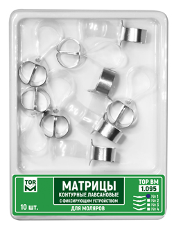 | № 1.095(2+) | Матрицы контурные лавсановые с фиксирующим устройством для крупных моляров с двумя центральными выступами 10 шт.