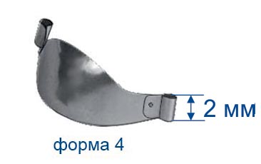 Высота трубочек на краях матриц формы 4 составляет 2 мм, что в 2 раза меньше, чем у матриц форм 1 - 3. Маленькая высота трубочек позволяет устанавливать матрицу на низкую коронку и перемещать ее вокруг зуба без касания десны.