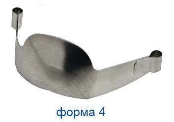 Высота трубочек на краях матриц формы 4 в 2 раза меньше, чем у матриц форм 1 - 3. Узкие края матрицы формы 4 не опираются на десну, что позволяет устанавливать матрицу на низкую коронку и перемещать ее вокруг зуба.