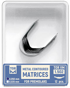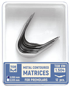 Metal Contoured Matrices for Premolars.shape 2 (bilateral)12 pcs. There are matrices of 2 thicknesses: