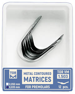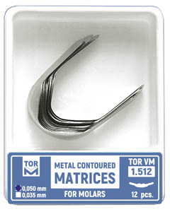 Metal Contoured Matrices for Premolars.shape 6 (bilateral), elongated12 pcs. There are matrices of 2 thicknesses: