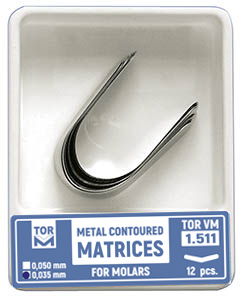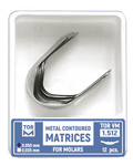 Metal Contoured Matrices for Molars.shape 5 (one central ledge), elongated12 pcs. There are matrices of 2 thicknesses: