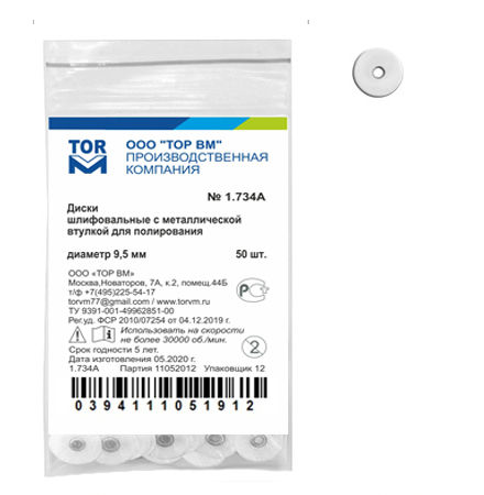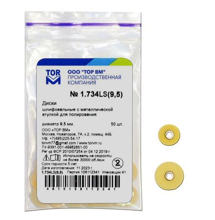 При заказе следует указывать требуемый диаметр, например, заказав № 1.734LS-9,5, Вы получаете набор дисков (50 шт.) для полирования диаметром 9,5 мм. |