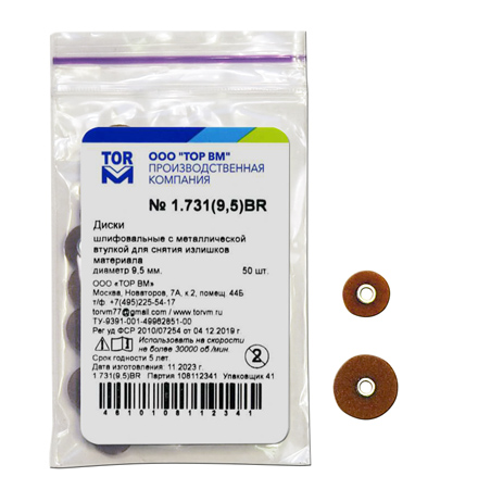 При заказе следует указывать требуемый диаметр, например, заказав № 1.731BR-9,5, Вы получаете набор дисков (50 шт.) для снятия излишков материала диаметром 9,5 мм. |