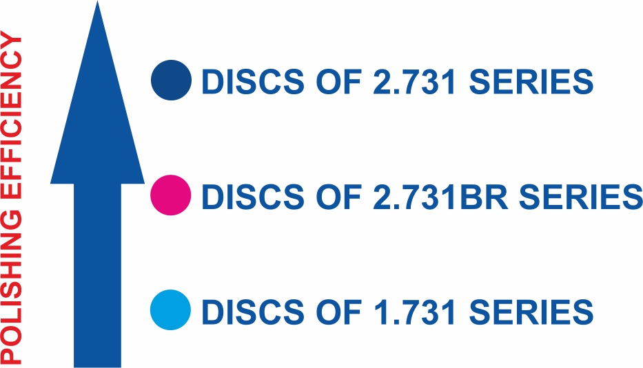 Discs of 2.731 series have the greatest polishing ability as compared to other discs produced by TOR VM. Discs 2.731BR are thinner and more flexible than discs 2.731. Discs of 2.731 series provide higher polishing efficiency and durability. |