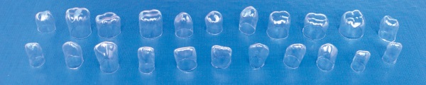 | В наборе № 1.912 представлены 16 типов матриц-колпачков для детских зубов. |