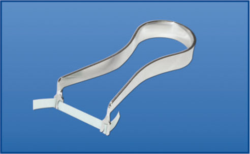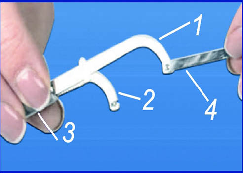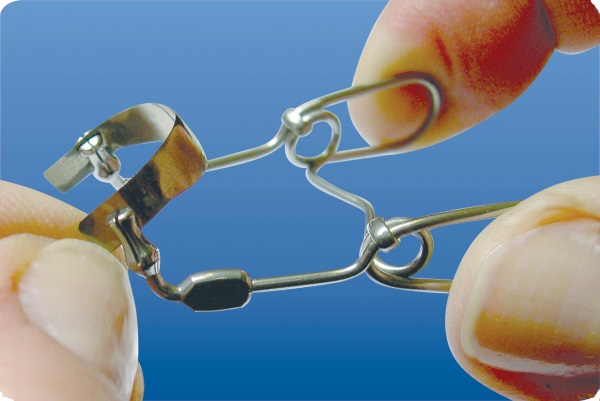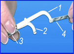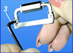 1. Вне полости рта вставляют ножки щипцов в отверстия в фиксаторе "Эластик".
