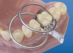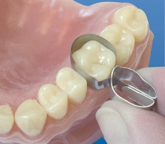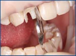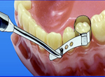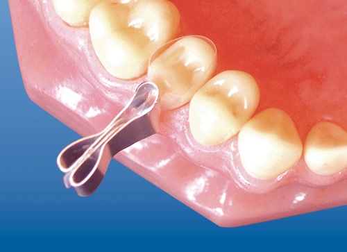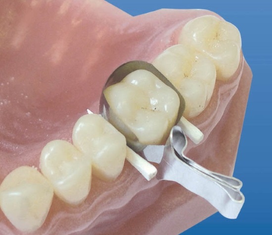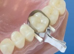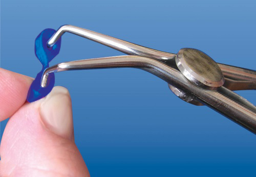 С помощью щипцов установите ситсему на реставрируемый зуб.