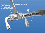 Подберите нужное расстояние между ножками держателя, вращая бегунок с резьбой с помощью ключа, вставьте полоску в щели ножек держателя: