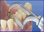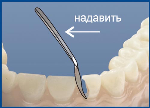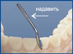 2. Надавить на ручку, как на рычаг, прижимая контурную рабочую часть к соседнему зубу.