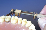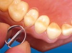 Отрегулируйте длину петли матрицы таким образом, чтобы матрица охватывала около 3/4 длины реставрируемого зуба, и установите систему на реставрируемый зуб.
