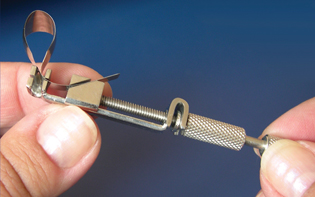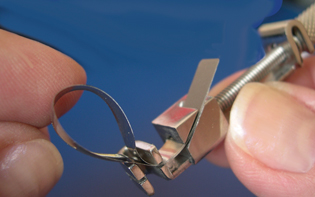 Щипцами N 1.099-1 (or 1.099-2, 1.099-3) разведите кольцо N 1.099, избегая чрезмерного разведения ножек кольца.