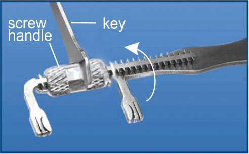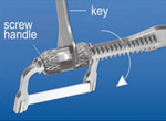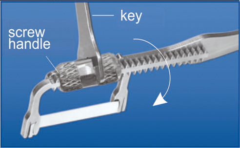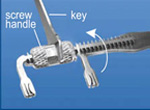 | Choose appropriate distance between holder tines by rotating holder screw handle with key,