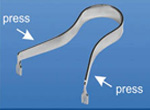 | Press tines closer as shown in the figure, insert the strip into the slots of holder tines: metal strips - scheme A (see above) plastic strips - scheme B (see above). |