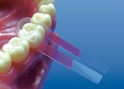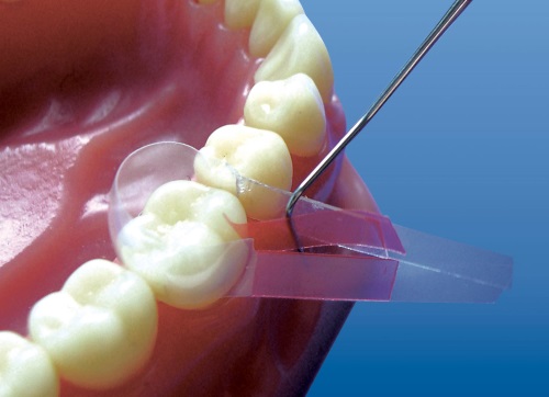 | Матрицы фиксируются без использования матрицедержателя за счет клеевого слоя на плоских участках матрицы, непосредственно примыкающих к контурированной рабочей зоне. По аналогии с матрицами контурными лавсановыми выпускаются 4-х форм для моляров и премоляров. Формы отличаются количеством и расположением придесневых выступов. | ![]() |