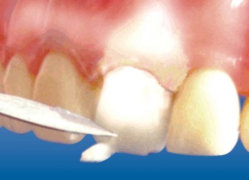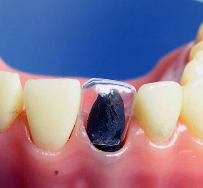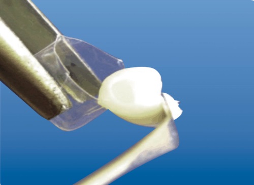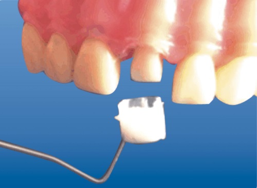 | 3. помещают колпачок на поврежденный зуб. | |