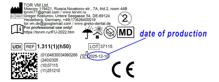 To find production date, see the date displayed on the back label near sign in format YYYY-MM-DD.