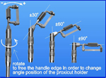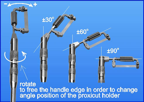 Rotating front edge of the handle provides fixation of do-all proxicut holder under various angles (7 operating positions are possible).
